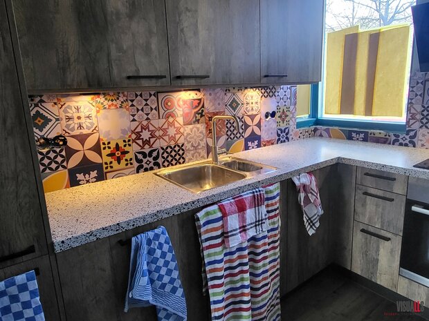 De afbeelding wordt door ons op maat ontworpen specifiek voor jouw keuken. We houden rekening met posities van stopcontacten, schakelaars e.d. en uiteraard met jouw wensen.