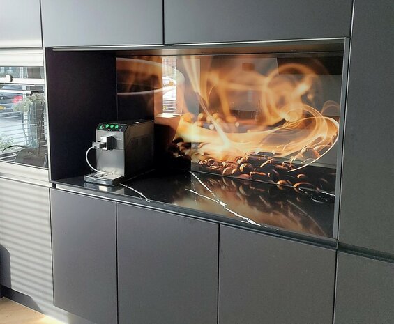 De afbeelding wordt door ons op maat ontworpen specifiek voor jouw keuken. We houden rekening met posities van stopcontacten, schakelaars e.d. en uiteraard met jouw wensen.