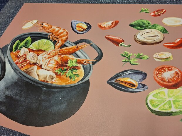 De afbeelding wordt door ons op maat ontworpen specifiek voor jouw keuken. We houden rekening met posities van stopcontacten, schakelaars e.d. en uiteraard met jouw wensen.