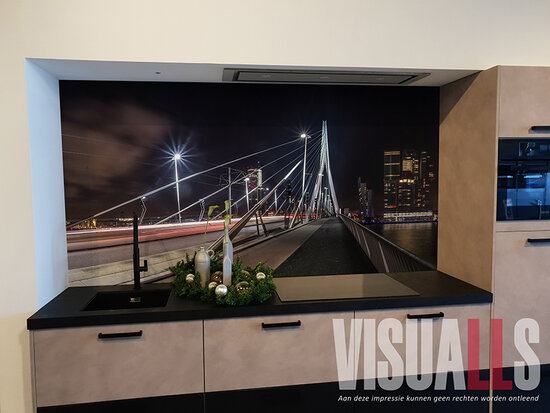 Deze afbeelding wordt door ons op maat ontworpen specifiek voor jouw keuken. We houden rekening met posities van stopcontacten, schakelaars e.d. en uiteraard met jouw wensen.